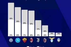 根據(jù)Footballrankings的預測,意甲有28%的概率下賽季五隊征戰(zhàn)歐冠。