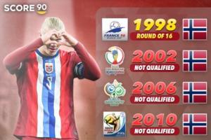 哈蘭德和挪威隊距離重返世界杯決賽圈只是一步之遙了,上一次他們在世界杯亮相還是1998年。這個賽季都目前為止,“魔人布歐”各項賽事已經(jīng)打進30球,他們會成為美加墨的黑馬么?
