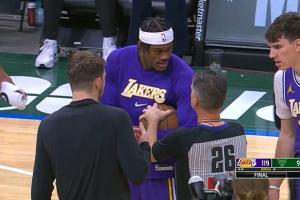 體育資訊11月16日訊 湖人客場119-95大勝雄鹿,比賽結(jié)束后發(fā)生了戲劇性的一幕。