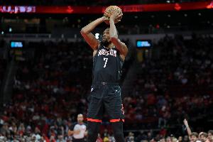 此役杜蘭特出場45分鐘24投13中,三分8中2、罰球7中7砍下35分5籃板6助攻1蓋帽,有5失誤,正負(fù)值+4。末節(jié)杜蘭特連中關(guān)鍵三分,加時(shí)賽的中投也幫助火箭擴(kuò)大優(yōu)勢。