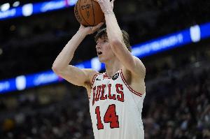 公牛球員布澤利斯上半場表現(xiàn)不錯(cuò),三分線外百發(fā)百中,沖搶籃板也還是很積極。