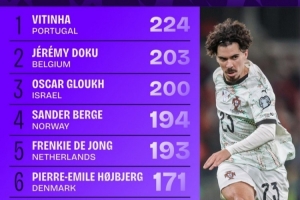 體育資訊11月20日訊 本屆世歐預小組賽已經(jīng)告一段落,squakwa也統(tǒng)計了本屆賽事在進攻三區(qū)的成功傳球情況,維蒂尼亞居首。