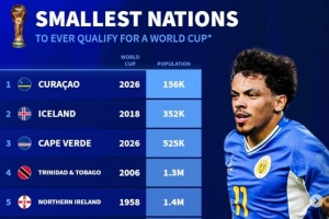 體育資訊11月20日訊 世預(yù)賽當(dāng)前僅剩多個(gè)附加賽名額待定,庫(kù)拉索以15.6萬人成為二戰(zhàn)之后晉級(jí)世界杯的人口最少國(guó)家,《轉(zhuǎn)會(huì)市場(chǎng)》也統(tǒng)計(jì)了二戰(zhàn)之后晉級(jí)世界杯人口最少的國(guó)家前十。
