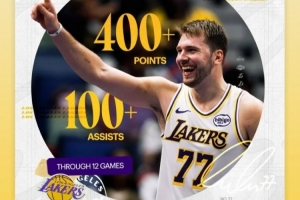 體育資訊11月26日訊 湖人當(dāng)家球星盧卡·東契奇本賽季出戰(zhàn)12場已達(dá)成400分100助,成為NBA歷史首人。