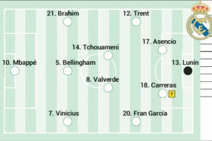 西班牙媒體《阿斯報》預測了皇馬此役的首發(fā)陣容,姆巴佩領(lǐng)銜,維尼修斯、迪亞斯、阿諾德在列。