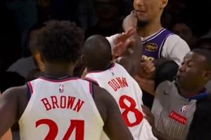 >東契奇搶板被推海斯幫東契奇出頭從背后推搡鄧恩雙方爆發(fā)沖突" />