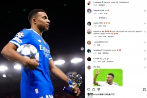 本場(chǎng)比賽姆巴佩上演大四喜,賽后他也在社媒曬出拿走比賽用球和全場(chǎng)最佳獎(jiǎng)杯的照片,配文寫(xiě)道:“永遠(yuǎn)團(tuán)結(jié)一致,皇馬加油!”