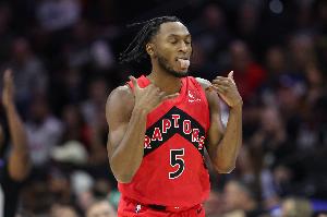 上半場比賽,猛龍后衛(wèi)奎克利發(fā)揮出色,進(jìn)攻端里突外投很高效,還能串聯(lián)球隊。