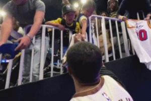 賽后,小佩頓給球迷簽名,一個(gè)小球迷非常興奮,他不斷給小佩頓送出飛吻,并高呼:“我愛(ài)你小佩頓!今天是我一生中最棒的一天!”