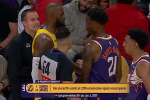 詹姆斯隨后籃下強(qiáng)攻罰球,本場目前拿到6分