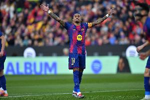 體育資訊12月3日訊 西甲第19輪比賽,拉菲尼亞破門,目前巴薩主場1-1馬競。