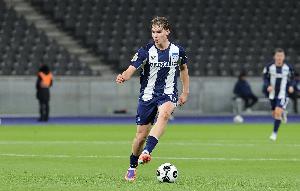 體育資訊12月3日訊 柏林赫塔在本輪德國杯6-1大勝凱澤斯勞滕,16歲小將艾?;舳魅〉眠M球。