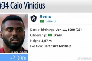 根據(jù)德轉(zhuǎn)顯示,球員在場(chǎng)上司職后腰,上賽季共出戰(zhàn)了28場(chǎng)巴乙聯(lián)賽,打進(jìn)5球助攻2次,目前德轉(zhuǎn)身價(jià)為200萬(wàn)歐。