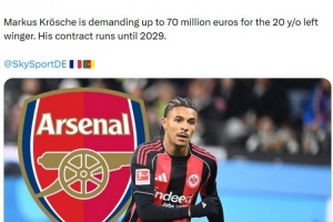 報道稱阿森納已經(jīng)明確展現(xiàn)出對這位20歲左邊鋒的興趣,有意在夏窗引進(jìn),法蘭克福也對此已經(jīng)知悉。法蘭克福體育總監(jiān)馬克爾斯·克羅斯切對球員要求高達(dá)7000萬歐元的轉(zhuǎn)會費。