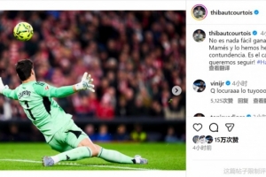 庫爾圖瓦社媒曬出撲救照片,配文:“在圣馬梅斯取勝絕非易事,而我們今天贏得干脆利落。這正是我們想要繼續(xù)前進的道路!”