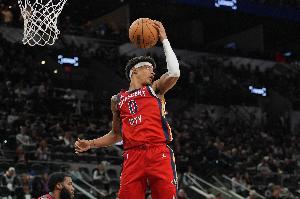 鵜鶘新秀費(fèi)爾斯首節(jié)表現(xiàn)出色,不僅外線兩度干拔三分命中,還有一條龍快攻上籃的精彩表現(xiàn),他還助攻馬特科維奇完成空接暴扣。