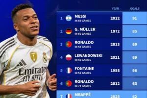 體育資訊12月08日訊姆巴佩今年進(jìn)球已達(dá)62球,進(jìn)入歷史前十,德轉(zhuǎn)盤點了足壇歷史自然年進(jìn)球紀(jì)錄。