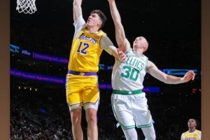 此前打凱爾特人拉拉維亞搶斷反擊一條龍,起飛滑翔單臂劈扣。湖人新秀蒂耶羅今日在INS調(diào)侃道:“這我見(jiàn)過(guò)他跳得最高的一次。??”