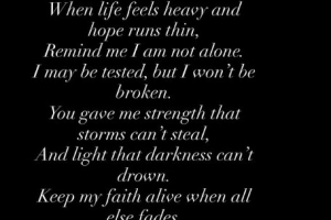 “我也許會被考驗,但不會被打倒。你賜予了我風暴無法奪走的力量,和黑暗無法掩蓋的光明?!?/p>