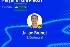 本場比賽布蘭特梅開二度,賽后當(dāng)選歐冠官方評選出的本場最佳球員。