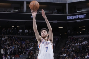 體育資訊12月11日訊 NBA杯1/4決賽,雷霆上半場(chǎng)74-48領(lǐng)先太陽(yáng)。