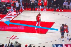 哈登指揮隊(duì)友去接球,小卡跑回來接,但是巴圖姆踩線失誤了!