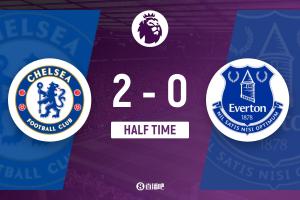 上半場傷停補時3分鐘,半場結(jié)束,切爾西暫2-0埃弗頓。