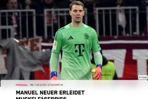 體育資訊12月15日訊 拜仁官方發(fā)布傷情公告,隊長諾伊爾在對陣美因茨比賽中肌肉纖維撕裂。