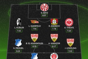 后衛(wèi):盧卡斯·庫布勒(弗賴堡,7.61分)、利奧波德·奎菲爾德(柏林聯(lián)合,7.96分)、安德里希(勒沃庫森,7.78分)、亞瑟·泰特(法蘭克福,7.23分)
