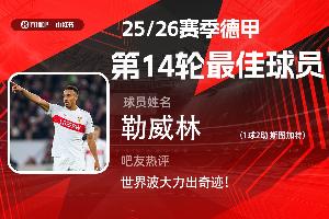 第14輪評選結(jié)果出爐,斯圖加特球員勒威林獨造三球,并轟出無解世界波,助球隊大勝不萊梅,獲得吧友超1萬票支持,當選【體育資訊X小紅書德甲第14輪最佳球員】!