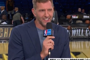 體育資訊12月17日訊 NBA杯決賽,馬刺vs尼克斯。諾維茨基擔(dān)任現(xiàn)場(chǎng)解說嘉賓。