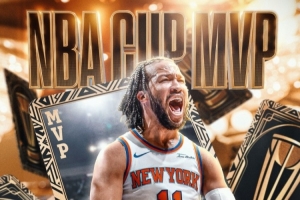 體育資訊12月17日訊 NBA杯決賽,尼克斯124-113戰(zhàn)勝馬刺,球隊核心后衛(wèi)布倫森喜獲NBA杯MVP!