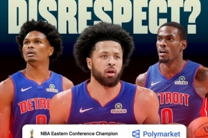 活塞隊以21勝5負的戰(zhàn)績領(lǐng)跑東部,但據(jù)預(yù)測機構(gòu)Polymarket預(yù)測,他們進入總決賽的概率僅為13% ??
