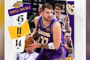 賽后,因傷缺陣的文森特轉發(fā)了東契奇的大號三雙數(shù)據海報。