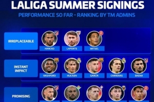體育資訊12月21日訊 《轉會市場》列出了本賽季多位西甲新援,并根據表現為他們進行了評級,拉什福德、赫伊森等5將獲評第2檔,阿諾德獲評第5檔。