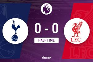 上半場傷停補時3分鐘,半場結(jié)束,利物浦暫0-0熱刺。