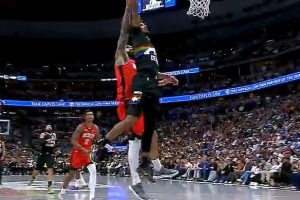 GIF-卡梅隆·約翰遜突破過(guò)掉亞當(dāng)斯,飛扣2+1,還有慢放!