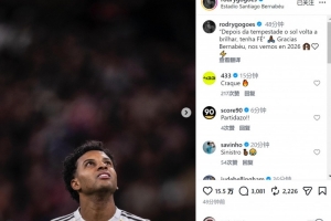 羅德里戈賽后社媒寫道:“‘風(fēng)雨過后,陽光總會(huì)重現(xiàn),保持信念????’感謝伯納烏,2026年再見?!?/p>