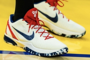 熱身階段,庫里上腳科比6代美國隊(duì)PE,美國國旗元素融入球鞋,清爽養(yǎng)眼。