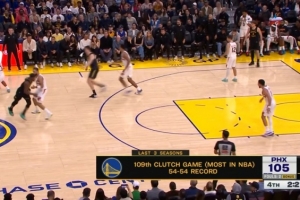 比賽第四節(jié)雙方雙方比分緊咬,轉(zhuǎn)播方曬出一組數(shù)據(jù):勇士近3個(gè)賽季打了109場(chǎng)膠著比賽(含本場(chǎng)),為聯(lián)盟最多!