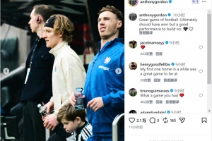 戈登賽后更新社媒動(dòng)態(tài),曬出多張此役的照片,配文:“精彩的足球比賽,雖然最終本應(yīng)取勝,但這場(chǎng)的出色表現(xiàn)可以成為繼續(xù)進(jìn)步的基石。”