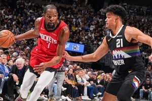這套單側(cè)邊線啟動、吸注意找弱側(cè)套路一開,掘金夾擊輪轉(zhuǎn)都慢一拍了。雖然今天杜蘭特有精彩的半場破領(lǐng)防游動中投,但火箭今天的傳球真開了。