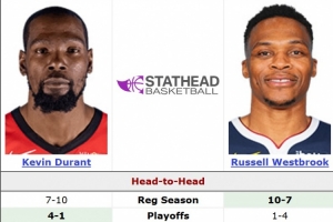 在本場(chǎng)比賽之前,杜蘭特和威少常規(guī)賽相遇17場(chǎng),杜蘭特7勝10負(fù);季后賽相遇5場(chǎng),杜蘭特4勝1負(fù)。