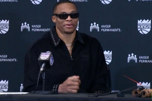 賽后,威少戴著墨鏡參加新聞發(fā)布會(huì),看起來(lái)心情很不錯(cuò),他貌似還帶著一節(jié)雙節(jié)棍參加發(fā)布會(huì),當(dāng)記者問(wèn)這是不是雙節(jié)棍時(shí),威少笑了笑沒(méi)有回答,繼續(xù)接受采訪。