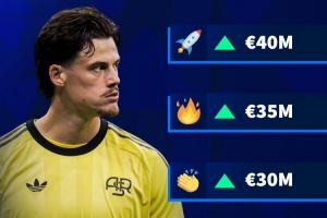 體育資訊12月23日訊 德國(guó)轉(zhuǎn)會(huì)市場(chǎng)曬出圖片,預(yù)熱羅馬門將斯維拉爾的身價(jià)變化,最新身價(jià)最高可能達(dá)到4000萬(wàn)歐元。