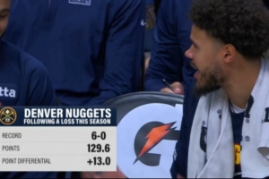 今日掘金135-112大勝爵士。至此,本賽季掘金在輸球后的第二場(chǎng)比賽中戰(zhàn)績(jī)?yōu)?勝0負(fù),場(chǎng)均轟下129.6分,場(chǎng)均凈勝13分。