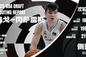 烏戈-岡薩雷斯是一名來自西班牙的運(yùn)動型防守側(cè)翼,有成長為3D球員的潛力。岡薩雷斯的父母都是職業(yè)籃球運(yùn)動員,因此他九歲就加入皇馬青訓(xùn)開始打籃球。2022-23賽季,岡薩雷斯輾轉(zhuǎn)于歐籃乙級聯(lián)賽青年隊(duì)和預(yù)備隊(duì)。2023年和2024年,岡薩雷斯在歐洲青年錦標(biāo)賽兩連冠并獲得一次MVP(決賽23分6助攻,場均17.5分6.5籃板3.8助攻)。2025年岡薩雷斯代表西班牙男籃出戰(zhàn)了歐錦賽。岡薩雷斯在西甲有限的上場時間里,總能為球隊(duì)帶來活力,還具備超出年齡的團(tuán)隊(duì)心態(tài)。他被認(rèn)為是2006年出生的國際球員里,防守能力最突出的外線球員,他在防守端的多功能性和積極的態(tài)度會很受歡迎。雖然岡薩雷斯目前還欠缺進(jìn)攻技巧,但他只要繼續(xù)提升自己的投射水平,就有機(jī)會在更高級別的賽場立足。