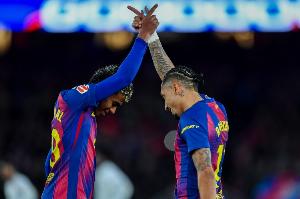 盡管拉菲尼亞在比賽中沒有佩戴隊長袖標(biāo),比如對陣比利亞雷亞爾的比賽,這個榮譽(yù)屬于弗蘭基·德容,但巴西邊鋒在球場上確實起到了領(lǐng)袖的作用。他多次展示了這一點,在巴塞羅那對陣阿拉維斯的比賽結(jié)束后,他安慰弗里克的畫面也在網(wǎng)絡(luò)上廣為流傳。