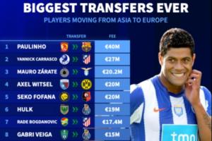 體育資訊06月28日訊 德轉(zhuǎn)盤點(diǎn)了足壇最貴的幾筆從亞洲到歐洲的球員轉(zhuǎn)會(huì),前廣州恒大中場(chǎng)保利尼奧4000萬(wàn)歐轉(zhuǎn)投巴薩占據(jù)榜單第一。