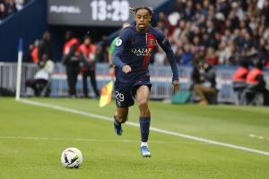 巴黎此前對皇馬首發(fā):1-多納魯馬、25-門德斯、4-貝拉爾多、5-馬爾基尼奧斯、2-阿什拉夫、8-法比安、17-維蒂尼亞、87-若奧-內(nèi)維斯、7-克瓦拉茨赫利亞、14-杜埃、10-登貝萊